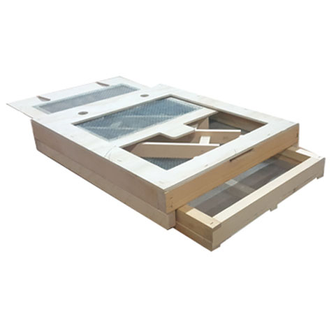 The OAC pollen is a proven design, and has been around for many decades. Place on top of your existing, reversed, bottom board. Your bees will then use the trap entrance to access their hive. Turn it on and off by pulling out the screen tray. All pollen falls through to the removable drawer below.