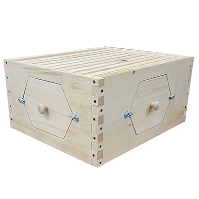 Our Canadian Made Observation Bee Hive Box will fit on any 10 frame langstroth hive and comes in deep size only. With the removable hexagon shape openings this box adds a classic touch to your apiary.